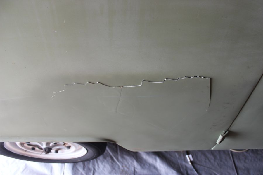 I think it hit like -5 degrees below zero this week – so cold that it cracked the crappy bondo job on the right rear panel! I knew the exterior had been repaired at some point, but obviously, that spot got more attention than the rest. I’m thinking it got cold, the metal contracted more than the Bondo… and eventually… crack! Not good! I’m not freaking out too much because I figured I would need some additional bodywork done when I get a full paint job – but it kind of sucks having a big cracking running down the bus! If it’s this cold in Chicagoland mid-December, I shudder to think what it will be like in January and February! Maybe my next post will be from a nice beach rental in Florida…. maybe!