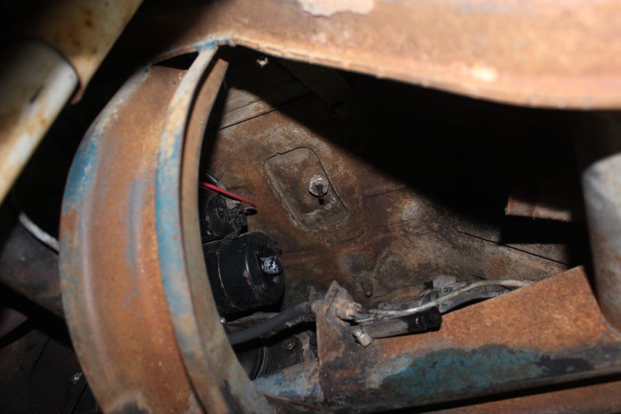 After running back in to tell Noelle all about the new expensive crack in the side of the bus, I got busy propping up one side so I had better access to the underside of the fuel tank. My plan was to pull the underside hose and connector off, and see if it is all gunked up. I got the old hose off no problem – it is definitely time to replace – the rubber felt almost rotten. I then spent the next couple hours trying to figure out how to drain the gas out – I thought it would just rush out of the now exposed connector, but it was dry. I tried blowing compressed air up into the tank, tried using a hand pump to siphon it out, nothing worked, I couldn’t get any gas out of the tank!